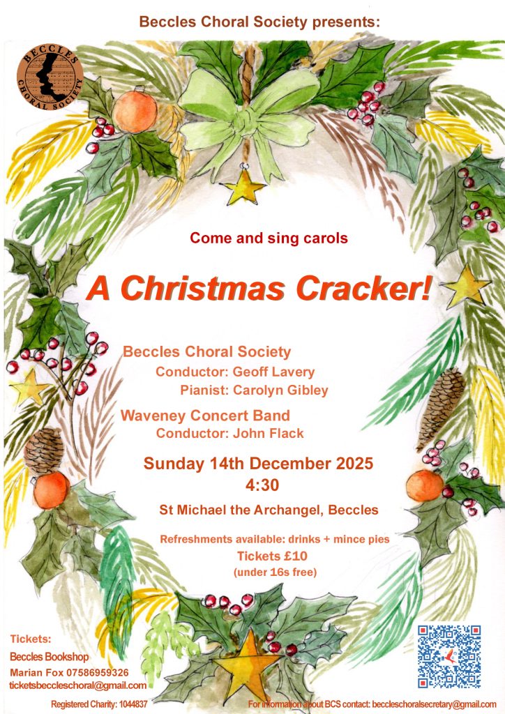 Our next concert is our Christmas Cracker! on Sunday 14th December starting at 4:30 in St Michael, the Archangel Church, Beccles